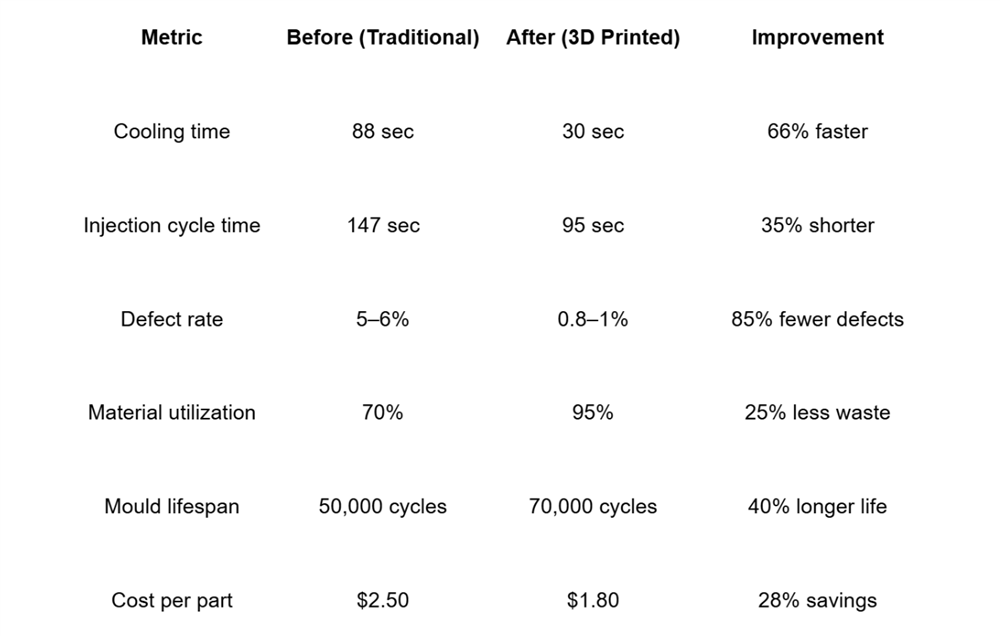 After switching to 3D-printed conformal cooling, the improvements were significant:
