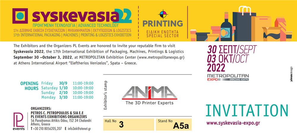 ANiMA will participate in the SYSKEVASIA 2022 exhibition, September 30 – October 3, 2022 at the METROPOLITAN EXPO exhibition center.